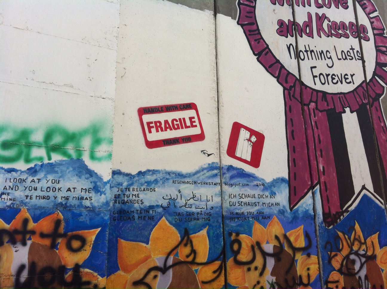 Wie man sieht, wird die Mauer, ähnlich wie früher in Berlin, zum Kunstobjekt.