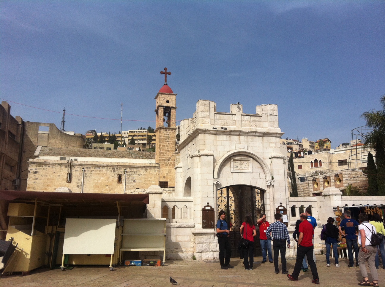 Jetzt befinden wir uns in Nazareth, wo die Verkündigungskirche besichtigt werden kann. Im inneren befinden sich alte Mauern, es soll das Haus Marias sein, wo der Erzengel Gabriel ihr mitteilte, daß sie ein Kind bekommen wird, den Sohn Gottes.