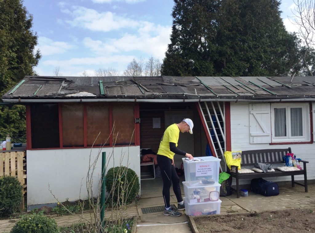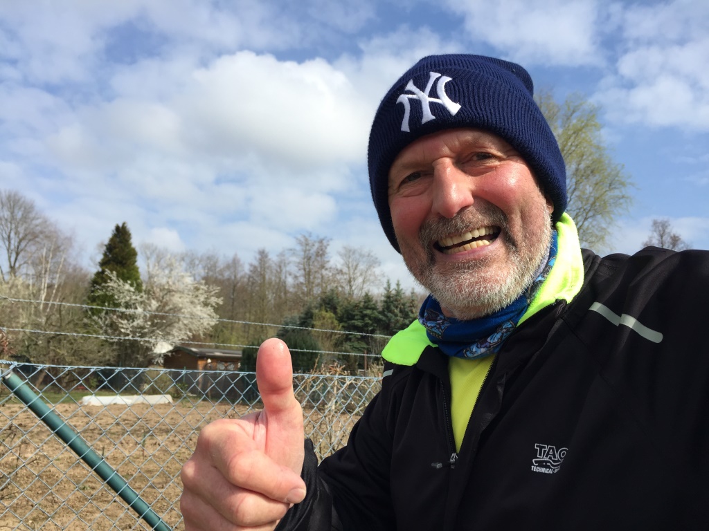 Michael hat hier am Rhumekanal schon zum zweiten mal die 2,05 km-Strecke rund um das Kleingartengelände für 12 Stunden freigegeben! Start ist in seiner Parzelle 107 am Sonntag morgen ab 6:30 Uhr, jeder kann seinen Startzeitpunkt selbst bestimmen, Finish ist 18:30 Uhr, bis dahin zählt jede volle Runde