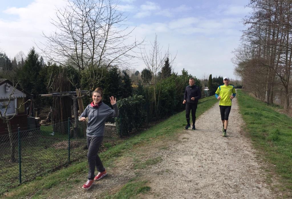 Jetzt ist der Ultra in vollem Gange, André und Rüdiger, dahinter Tanja, …