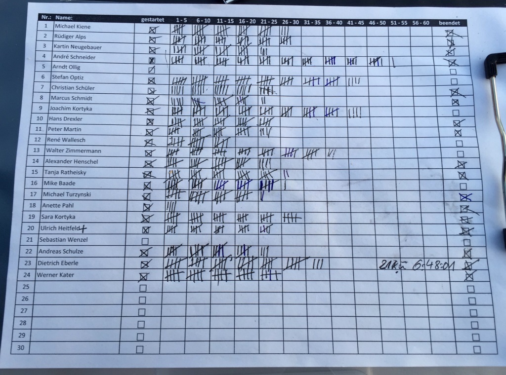 … und einige Stunden später gegen 18:15 Uhr mein Quantum von 33 Umdrehungen = 67,65 km erreicht